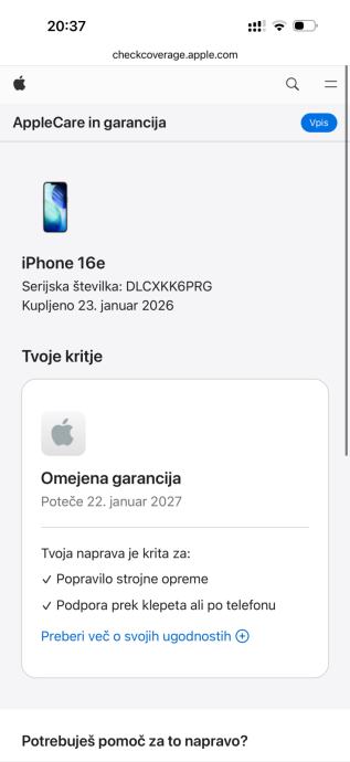 Prodajem novi, samo aktiviran 22.1.2026 iPhone 16e 128Gb White