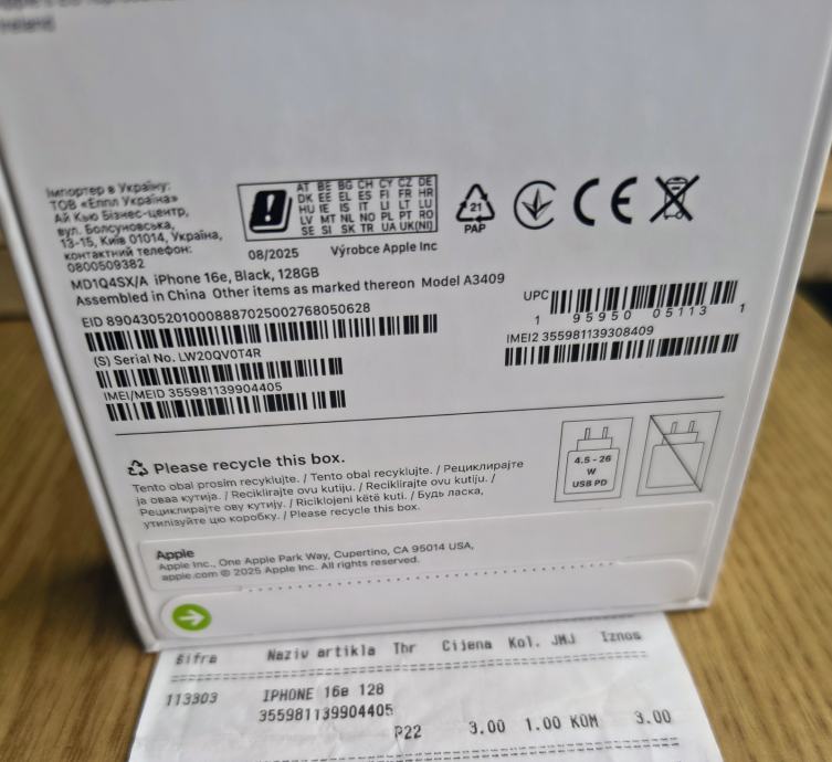 Iphone 16e 128GB Novo Zapakirano Garancija