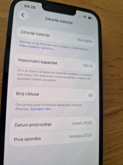 Koristen cca 3,5mj, samo u radno vrijeme, doslovno je kao NOVI, NOVI, dolazi u original kutiji s računom iz A1 centra od 12.10.2025., kapacitet baterija je na 100%, ima 98 cikisa punjenja.