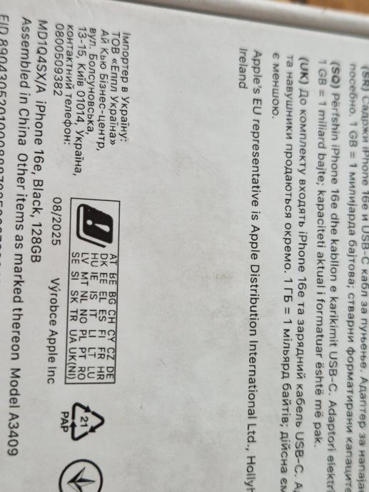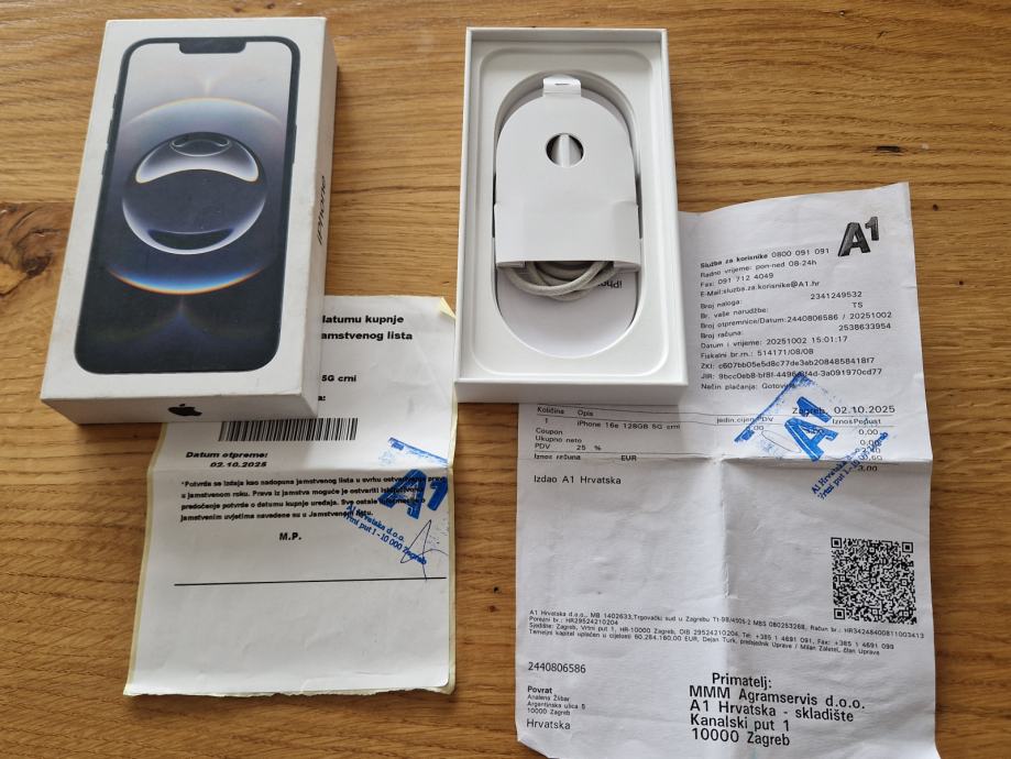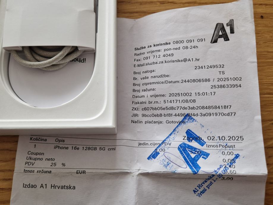iPhone 16e, Black, 128gb, A1 račun, garancija 20mj.