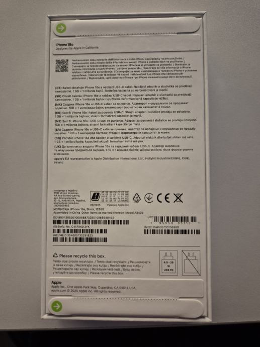 Prodajem novi iPhone 16e 128, original zapakiran, crne boje, sa novim zapakiranim punjačem. Sve se vidi na slikama. Ne šaljem poštom, samo osobno preuzimanje