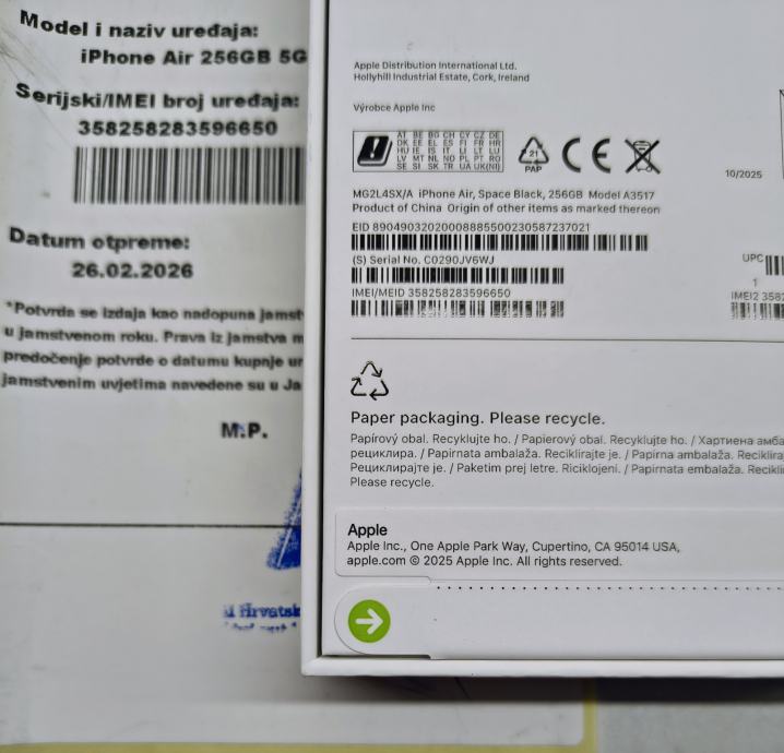 iPhone 17 Air 256GB Black Novo Zapakirano Garancija