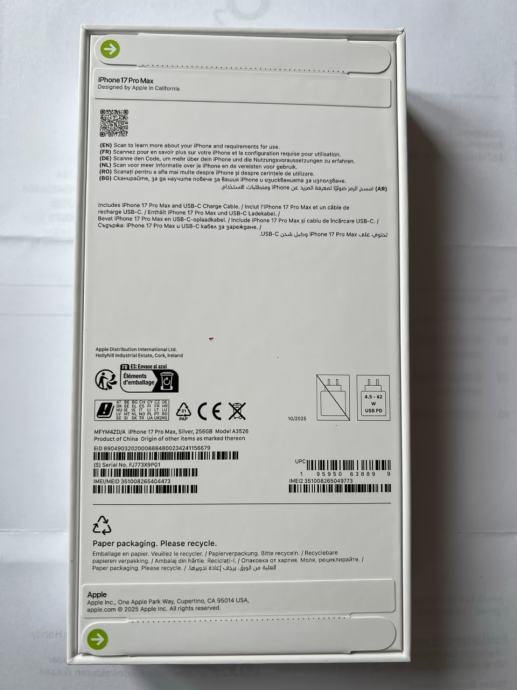 Apple iPhone 17 Pro Max 256Gb Silver | A3526 | NOVO + Račun