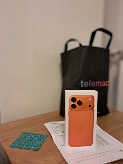 Prodajem novi iPhone 17 Pro Max 256Gb u narančastoj boji. Uređaj je tvornički zapakiran te posjeduje račun i jamstvo u trajanju 2 godine. Kupljen je u poslovnici Telemacha.