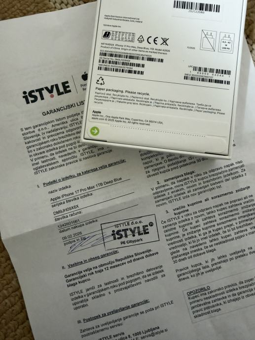 Kupljen je u iStyle Slovenija, prilažem originalni račun koji vrijedi kao garancija.