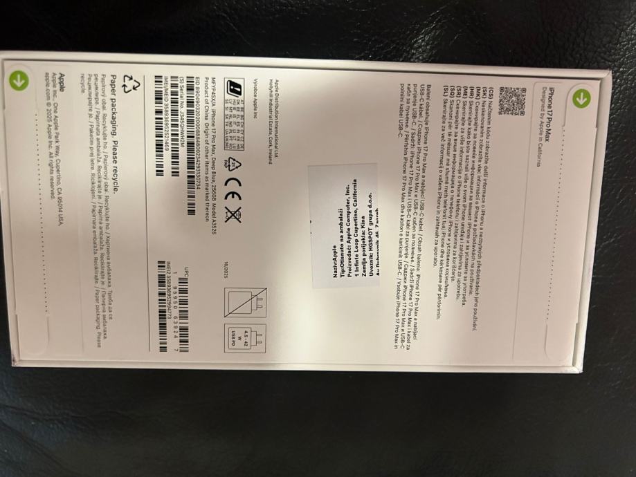 Prodajem potpuno novi zapakiran iphone 17 pro max 256 gb.