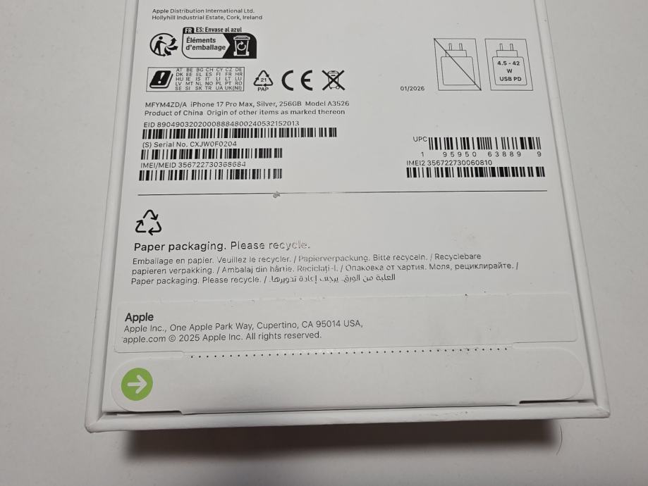 iPhone 17 Pro max 256 Silver Novi Zapakiran