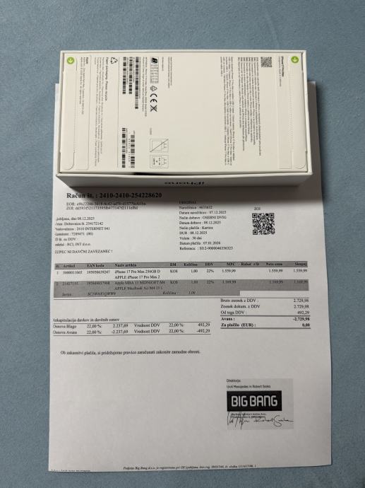 Kupljen je u Big Bang Slovenija, prilažem originalni račun koji vrijedi kao garancija.