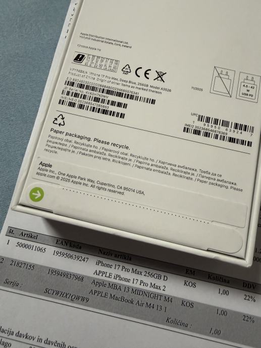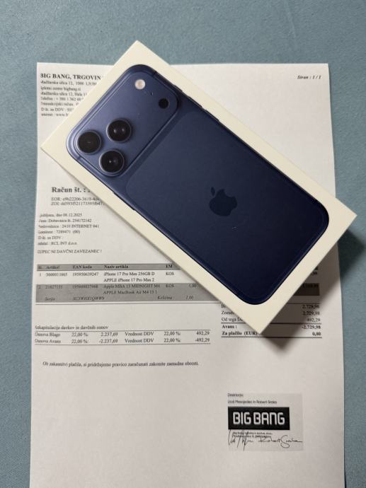 Prodajem novi, original zapakiran iPhone 17 Pro Max 256Gb, Deep Blue