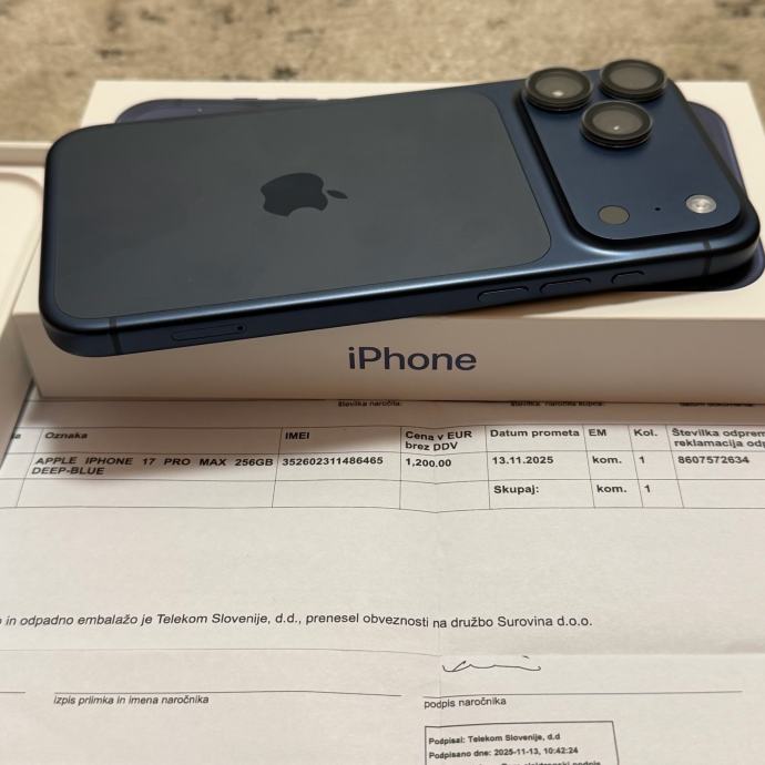 Iphone 17 Pro Max 256GB Deep Blue (14 ciklusa punjenja)