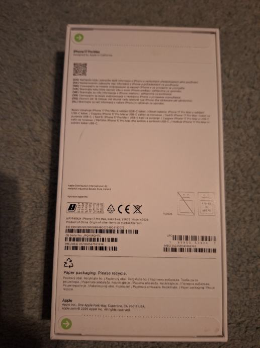 Prodajem nov zapakiran iphone 17 max pro 256gb racun garancija.