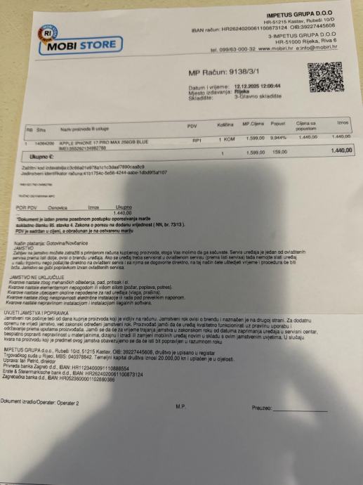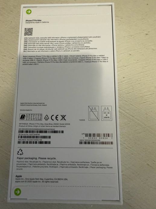 Iphone 17 pro max 256gb. Zapakiran. Račun