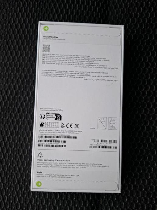 PRODAJEM NOVI ZAPAKOVAN IPHONE 17 PRO MAX 256 BLUE BOJE UZ NJEGA ORGINAL MASKA STAKLO I PUNJAC UZET U NJEMACKOJ IMA GODINU DANA GARANCIJE OD AKTIVACIJE