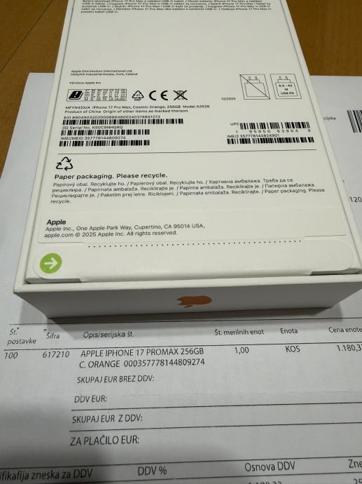 Prodajem novi, original zapakiran iPhone 17 Pro Max 256Gb, boje Cosmic Orange ili Deep Blue