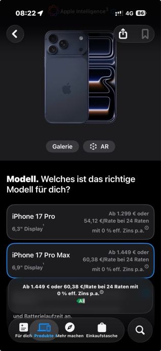 Prodajem potpuno novi originalni iPhone 17 Pro Max 256GB Plave boje kupljen na Apple.de (Njemacka). Mobitel je zapakirani i nikada nije bio aktiviran.