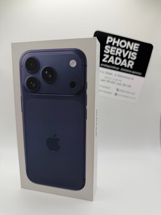 iPhone 17 Pro Max 256GB Plavi,novo zapakirano. Tvoriničko jamstvo 12mj. Mogućnost plaćanja karticama te izadvanje R1 računa.