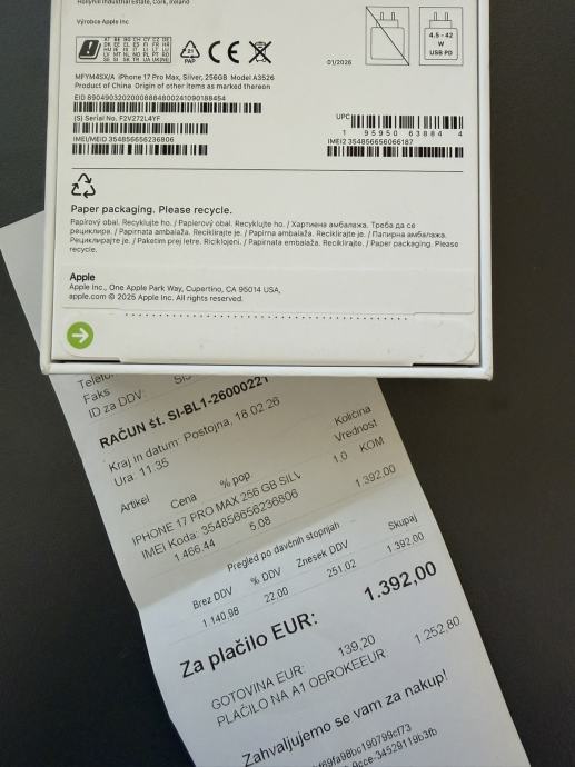 Kupljen je u Telekom Slovenija, prilažem originalni račun koji vrijedi kao garancija.