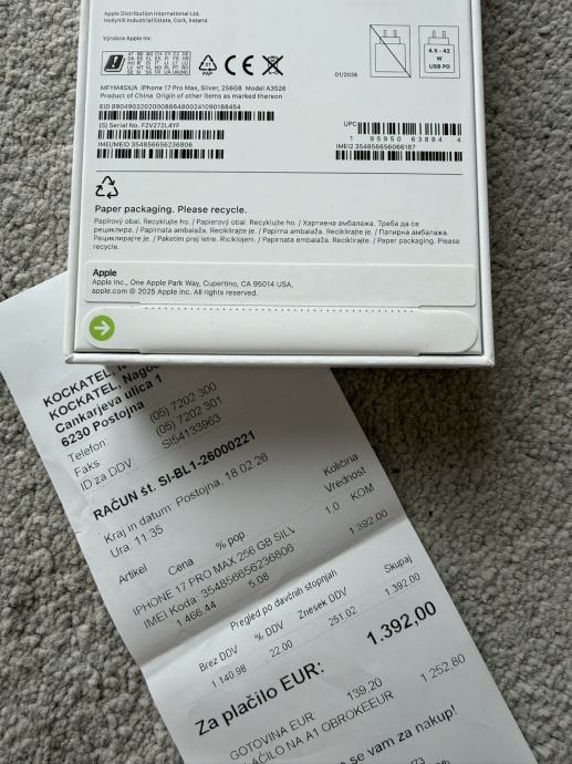 Kupljen je u Telekom Slovenija, prilažem originalni račun koji vrijedi kao garancija.