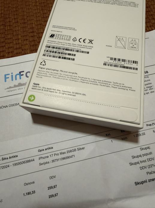 Prodajem novi, original zapakiran iPhone 17 Pro Max 256Gb, boje Silver ili Deep Blue