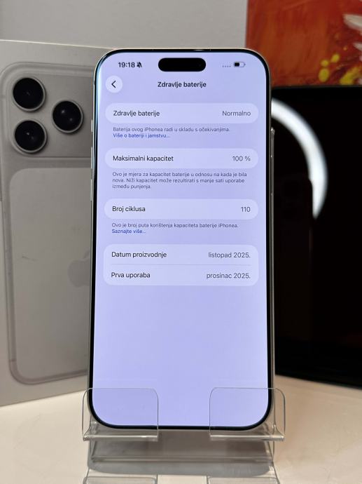 Uređaj u besprijekornom stanju te potpuno ispravan. Baterija na 100% zdravlja. Jamstvo do 12/2026.