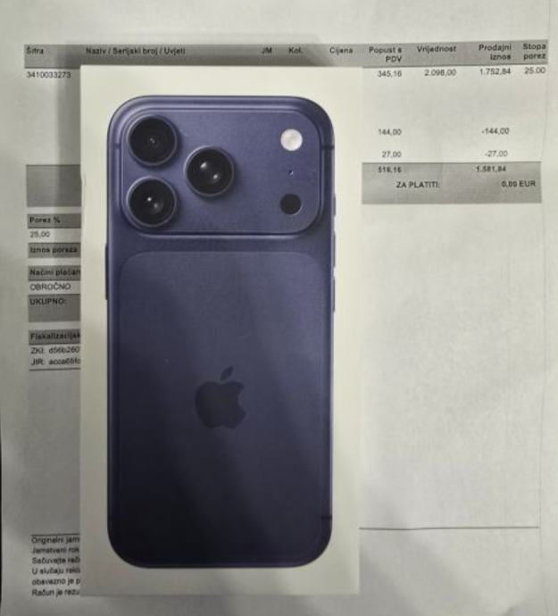 IPHONE 17 PRO MAX 256GB NOVI VAKUMIRAN U KUTIJI RAČUN HR