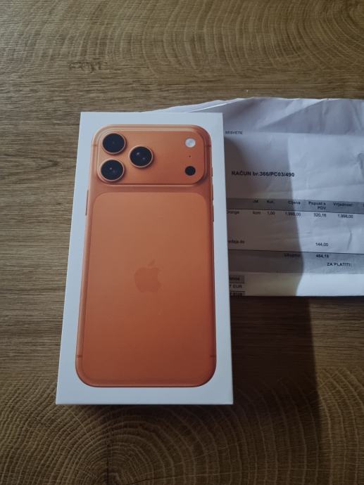 Prodajem Iphone 17 Pro Max 256GB boja Orange ****ZAPAKIRAN****racun,garancija!Bjelovar-Zagreb osobno preuzimanje,a moze i slanje HP Ekspresom placanje pouzecem,nakon sto pregledate paket!!
