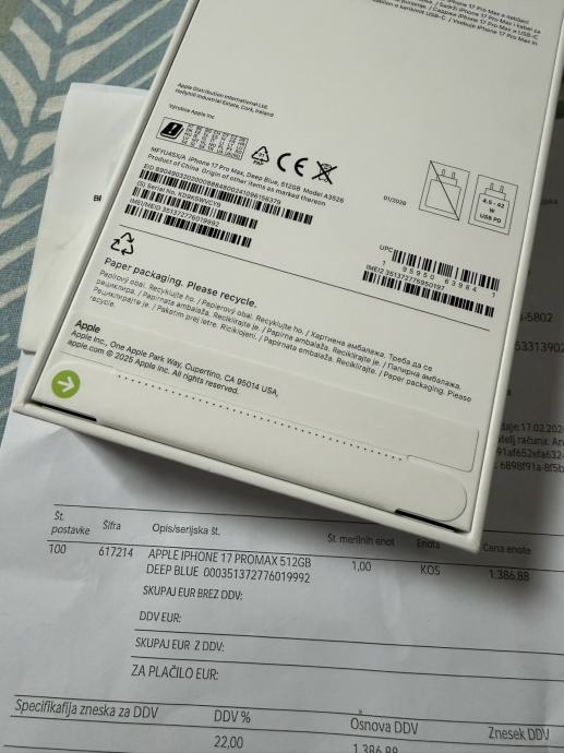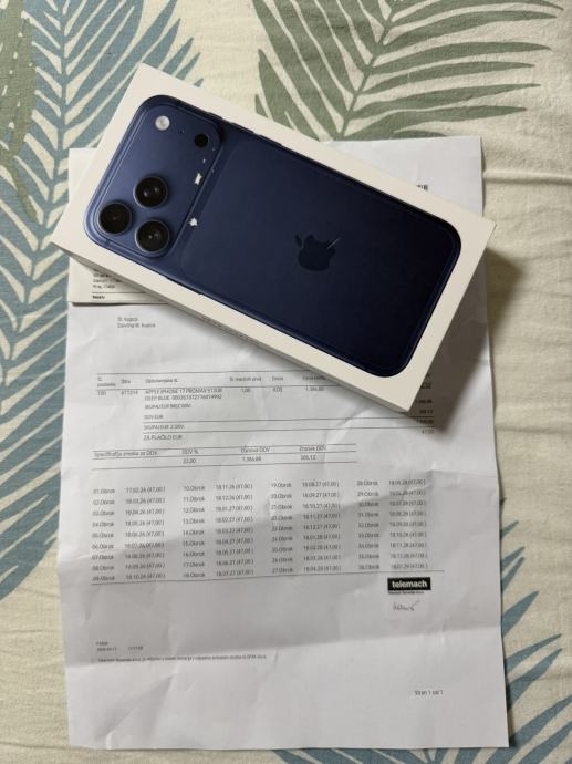 Prodajem novi, original zapakiran iPhone 17 Pro Max 512Gb, boje Deep Blue.