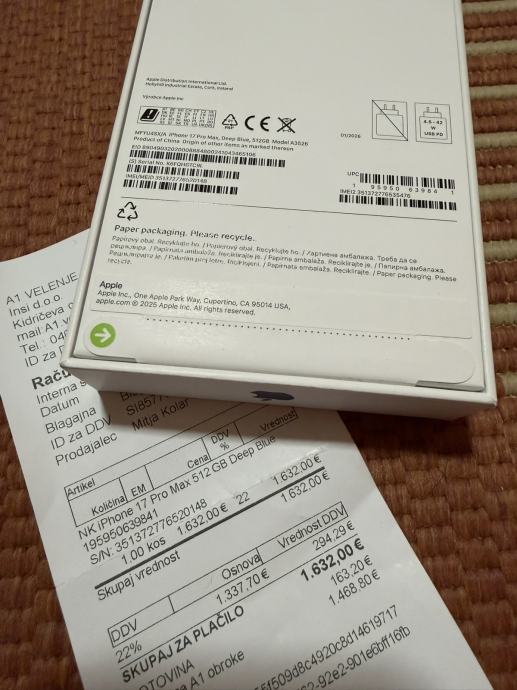 Kupljen je u A1 Slovenija, prilažem originalni račun koji vrijedi kao garancija.