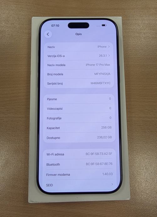 Prodajem u plavoj boji iphone 17 pro max sa 256gb skladišne memorije. Uređaj je odlično očuvan. Račun i garancija A1. Novi iOS. Zdravlje baterije na 100% kapaciteta. Kupcu na poklon maskice. Cijena 1200€ fixno. Cijena u zamjeni veća. Primopredaja zg, ostalo po dogovoru. Kontakt broj: 092-2142/607. Može poziv, sms, viber, whatsapp.