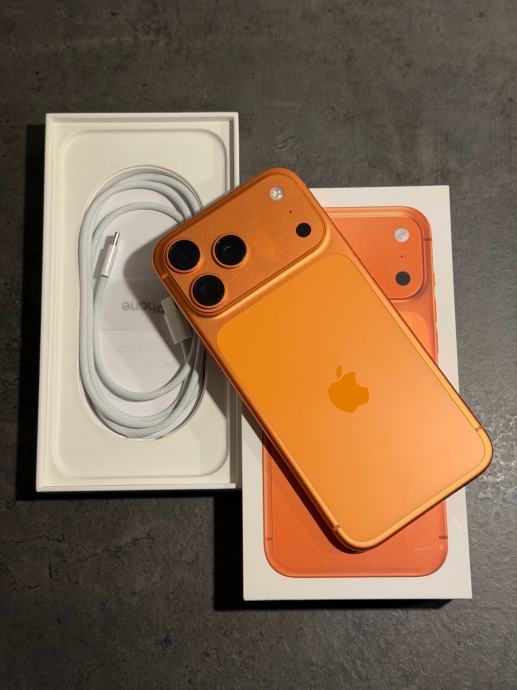 Prodajem iPhone 17 Pro max od 512gb memorije u narančastoj boji. Mobitel je u savršenom stanju bez ikakvih tragova korištenja kao što se može vidjeti na slikama. Uređaj je korišten jedan mjesec te ima 30 ciklusa punjenja i 100% kapaciteta baterije.