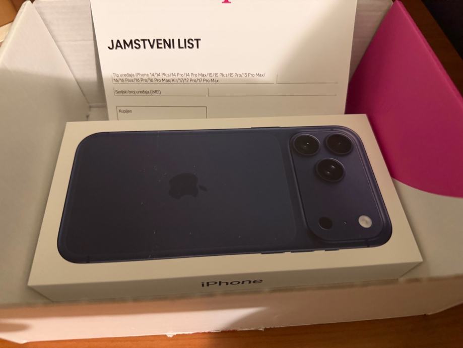 Prodajem iPhone 17 Pro Max, 512 GB, ekskluzivna duboko plava boja.