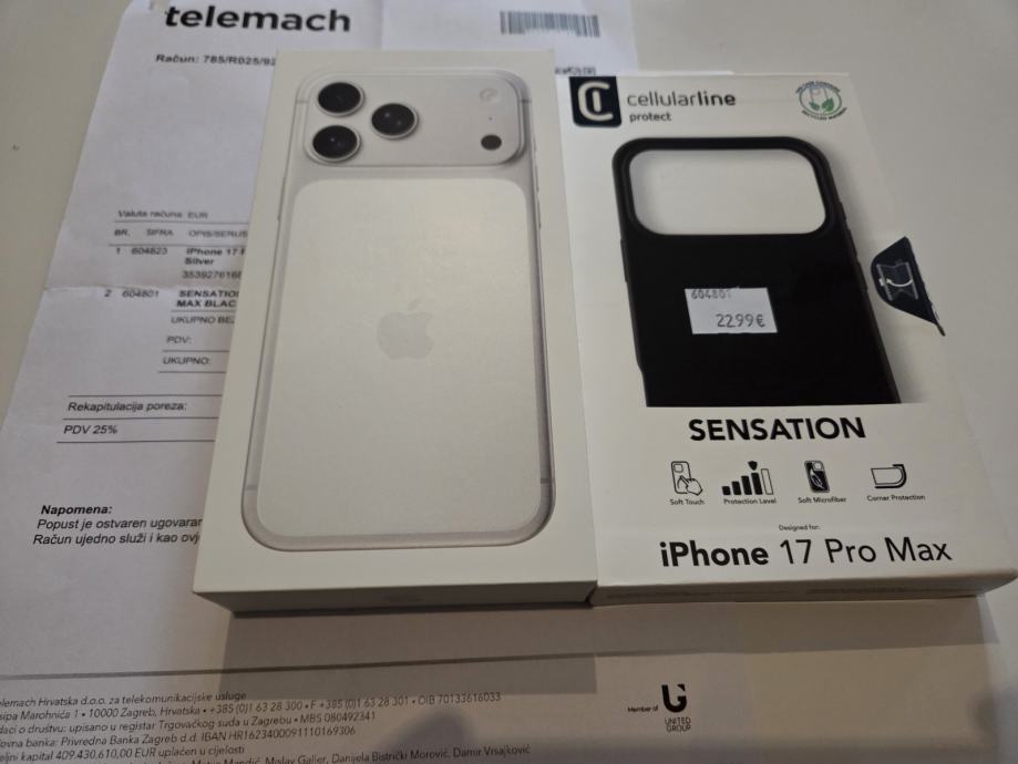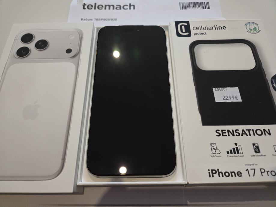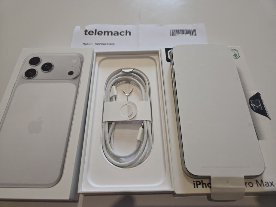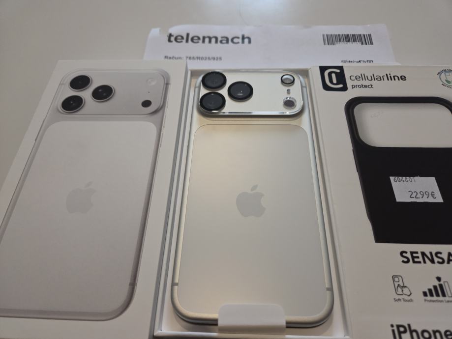 Prodajem novi samo isprobani Apple Iphone 17 Pro Max boja silver.Hr račun i jamstvo.Na ekran stavljeno kvalitetno kaljeno staklo kupljeno i istyle i staklo na poleđini oko kamera placeno 65e te kvalitetna maska placena 23e.Uređaj stoji u kutiji i čeka novog vlasnika jer sam navikao na android i to je razlog prodaje.Kontakt 099-671/8991