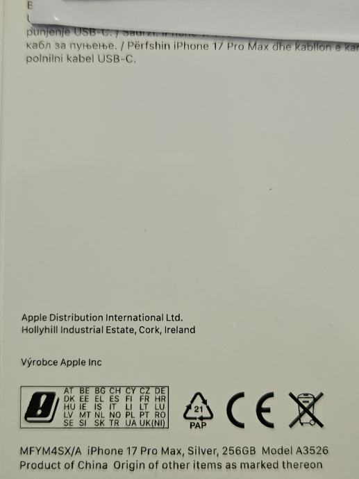 iPhone 17 Pro Max NOVO ZAPAKIRANO