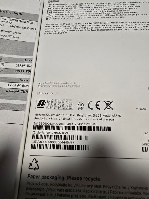 Prodajem iphone17pro max 256gb deep blue NOVO