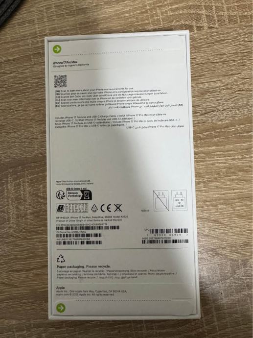 Prodajem potpuno novi iPhone 17 Pro Max s 256 GB memorije u boji Deep Blue (duboko plava). Uređaj je nov, u originalnom pakiranju.