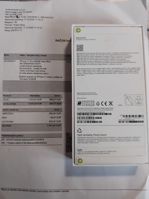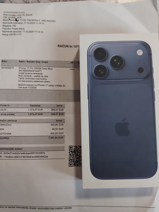 Prodajem novi zapakirani Apple IPhone 17 pro 256gb Depp Blue