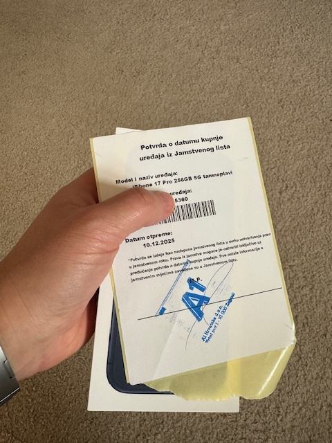 Kupljen u A1, JAMSTVO, RACUN od 10.12.2025.