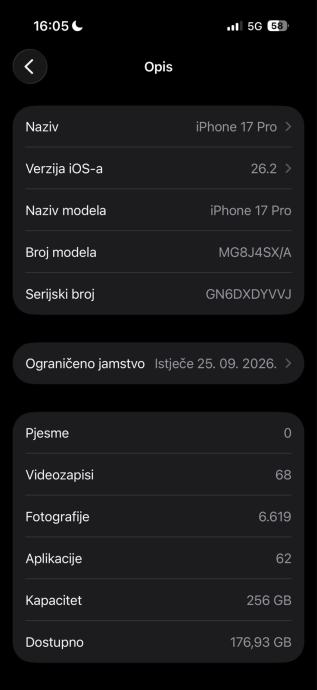 Prodajem Apple iPhone 17 Pro Deep Blue 256 gb kupljen u Hrvatskome telekomu te aktiviran 27.09 i od tada se koristi u original maskici tako da nema ni jednoga traga korištenja.