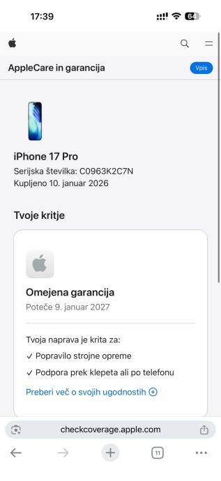 Kupljen je 22.12.2025. u iStyleu (Slovenija), aktiviran 9.1.2026., jamstvo do 9.1.2027. Prilažem jamstveni list.