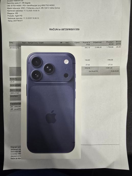 Nov zapakiran mobitel sa racunom i garancijom.Mobitel se moze preuzeti u Zagrebu ili ga mogu poslati na kucnu adresu po cijeloj Hrvatskoj.