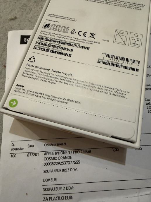 Prodajem novi, original zapakiran iPhone 17 Pro 256Gb, boje Cosmic Orange