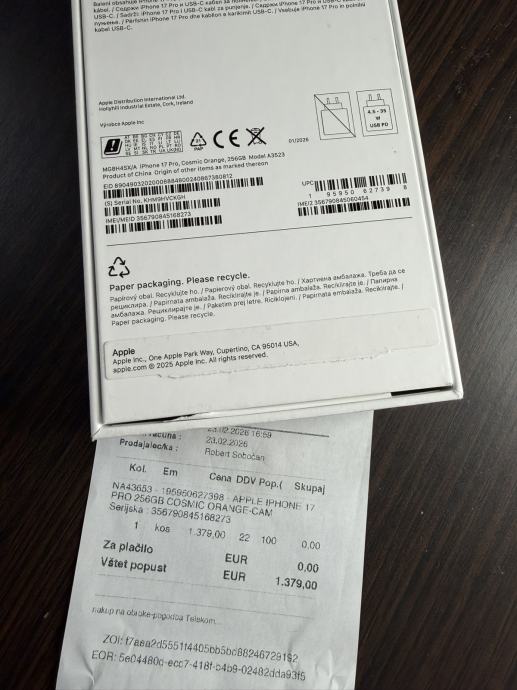 Kutija otvorena u trgovini, telefon neaktiviran. Kupljen od Telekoma Slovenija. Prilažem originalni račun za jamstvo.