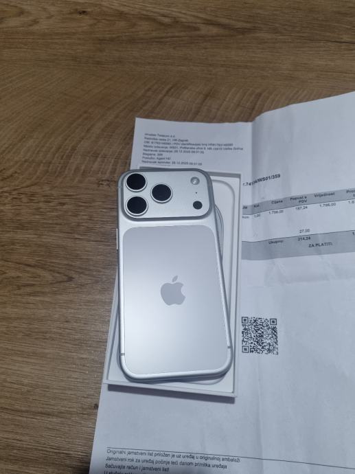 Prodajem Iphone 17 Pro 256GB boja Silver,Baterija 100% 19 ciklusa KAO NOV,Bjelovar-Zagreb osobno preuzimanje,a moze i slanje HP Ekspresom placanje pouzecem,nakon sto pregledate paket!!ZVATI NA 0998706666