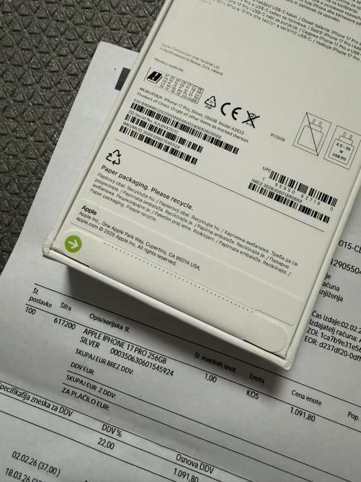 Prodajem novi, original zapakiran iPhone 17 Pro 256Gb, boje Deep Silver ili Blue