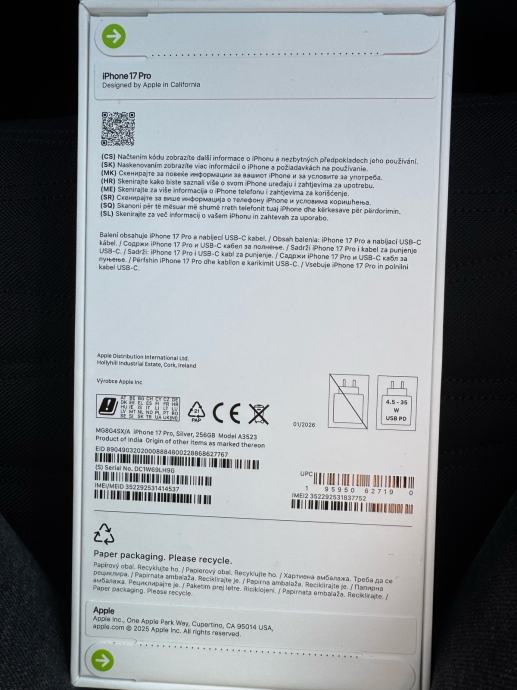 iPhone 17 Pro 256GB Silver, NOVO