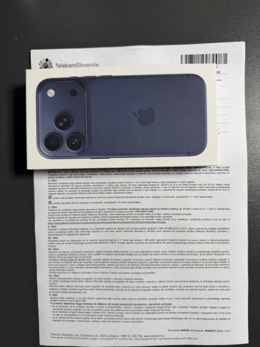 Prodajem novi, original zapakiran iPhone 17 Pro 512Gb, boje Deep Blue