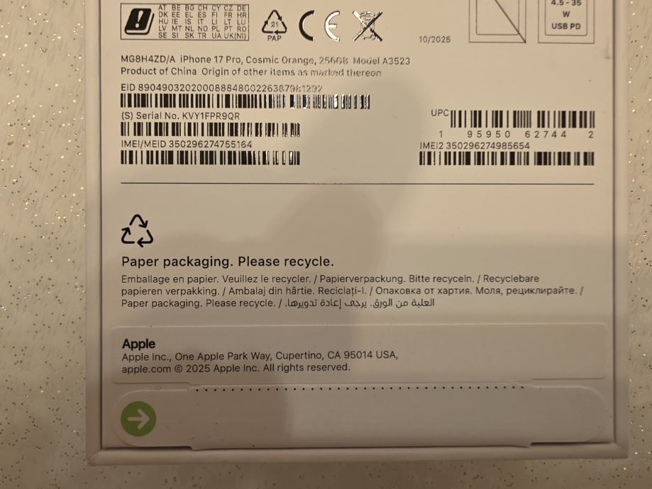 iPhone 17 Pro Cosmic Orange novi zapakiran