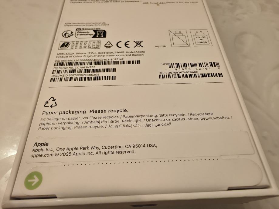 iPhone 17 pro Deep Blue 256Gb Novi Zapakiran