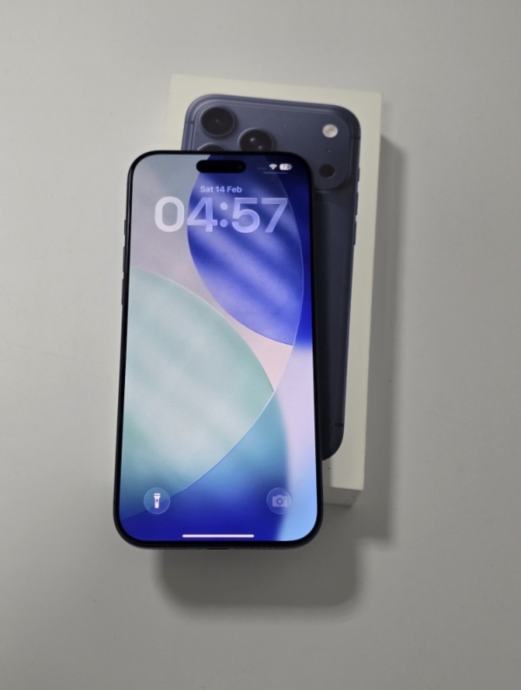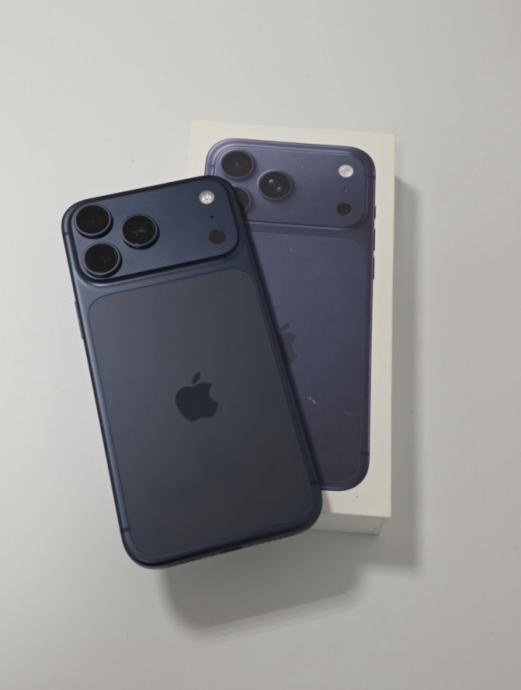 Prodajem rabljeni iPhone 17 Pro s 256 GB memorije u boji duboko plava. Baterija je na 100% kapaciteta s ukupno 96 ciklusa punjenja, što govori da je uređaj vrlo malo korišten. Dolazi s originalnom kutijom.