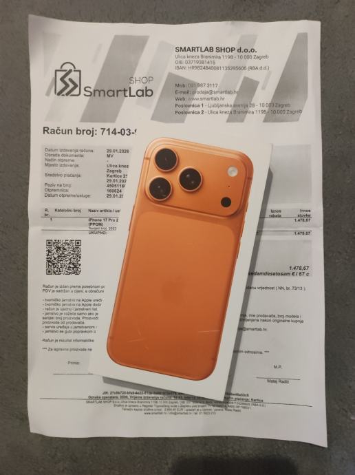 IPHONE 17 PRO ORANGE NOVO ZAPAKIRANO RAČUN I GARANCIJA 2 GODINE